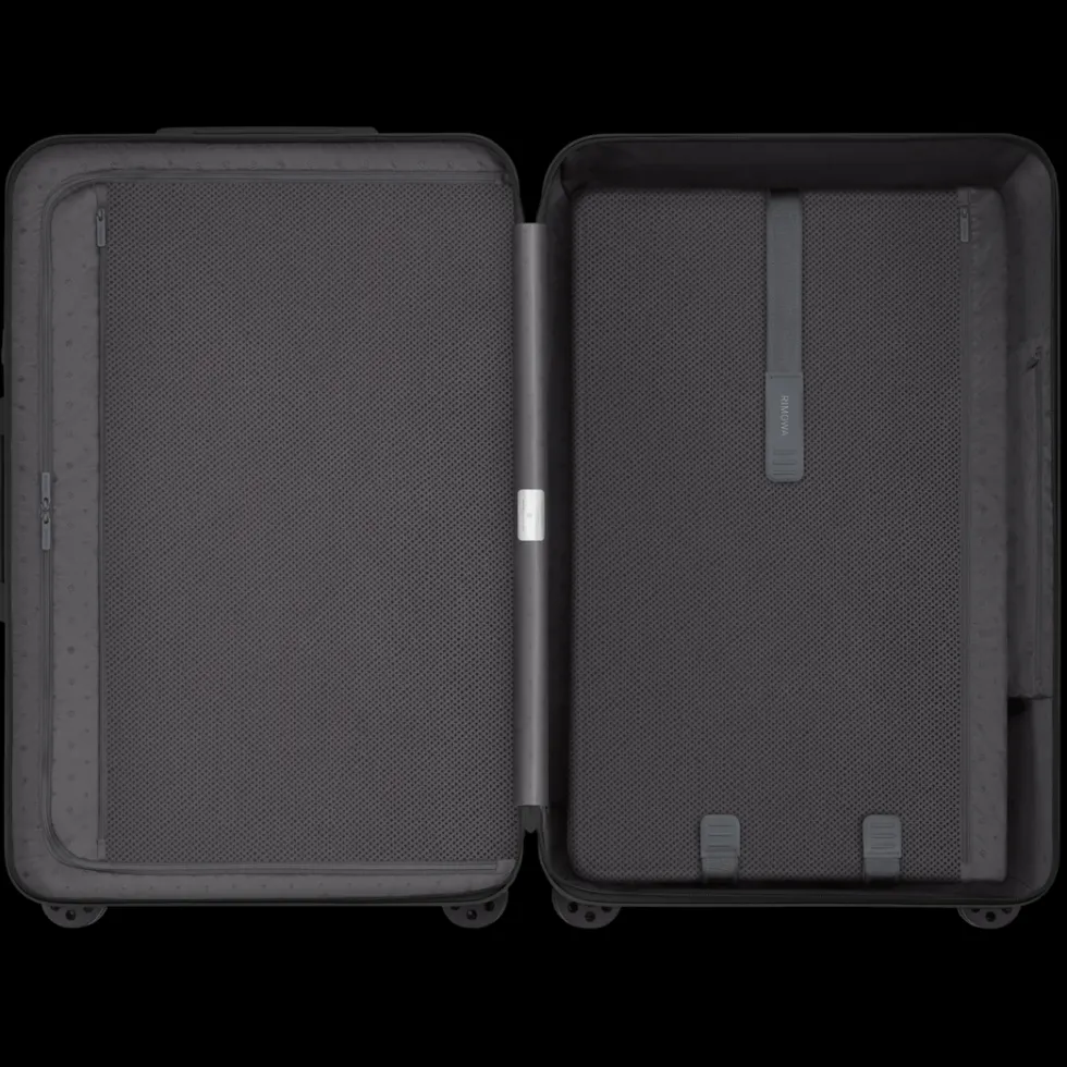 Der RIMOWA Essential Check-in L in mattem Schwarz ist der ideale Koffer für 14- bis 15-tägige Reisen und bietet eine Reihe von cleveren Funktionen: