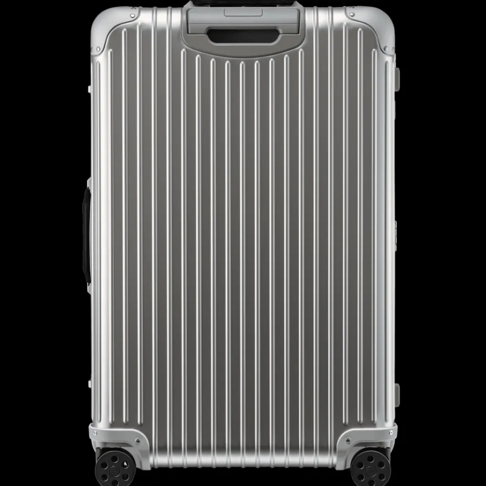 Der RIMOWA Original Check-In L Twist in Silber & Schwarz besteht aus hochwertigem eloxierten Aluminium mit auffälligen und farblich abgestimmten Lederdetails an den Griffen, Schlössern und der Dichtung. Dieser bemerkenswert robuste, überraschend leichte und große Koffer ist ein unvergleichliches Symbol für Handwerkskunst und Innovation. Ausgestattet mit einem passenden Ledergepäckanhänger bietet er genügend Platz für bis zu 10 Reisetage.